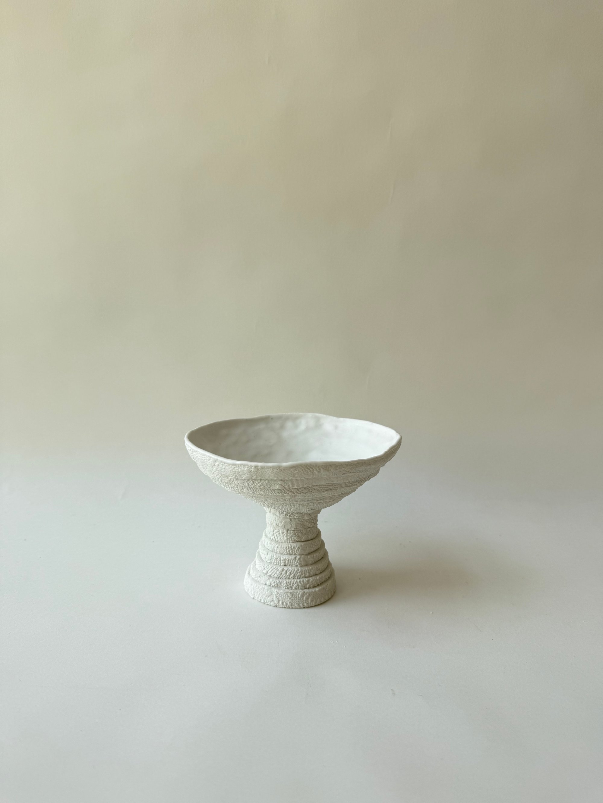 White paper porcelain clay ikebana vase or bowl, formed by building up individual coils imprinted one at a time with delicate Antique French lace. Each piece is completely unique due to the random placement of the imprint onto the coils & the free building technique to create organic shapes.